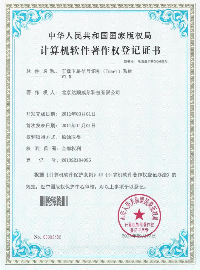 车载卫星信号识别0609858:车载卫星信号识别(Tuner)系统v1.0